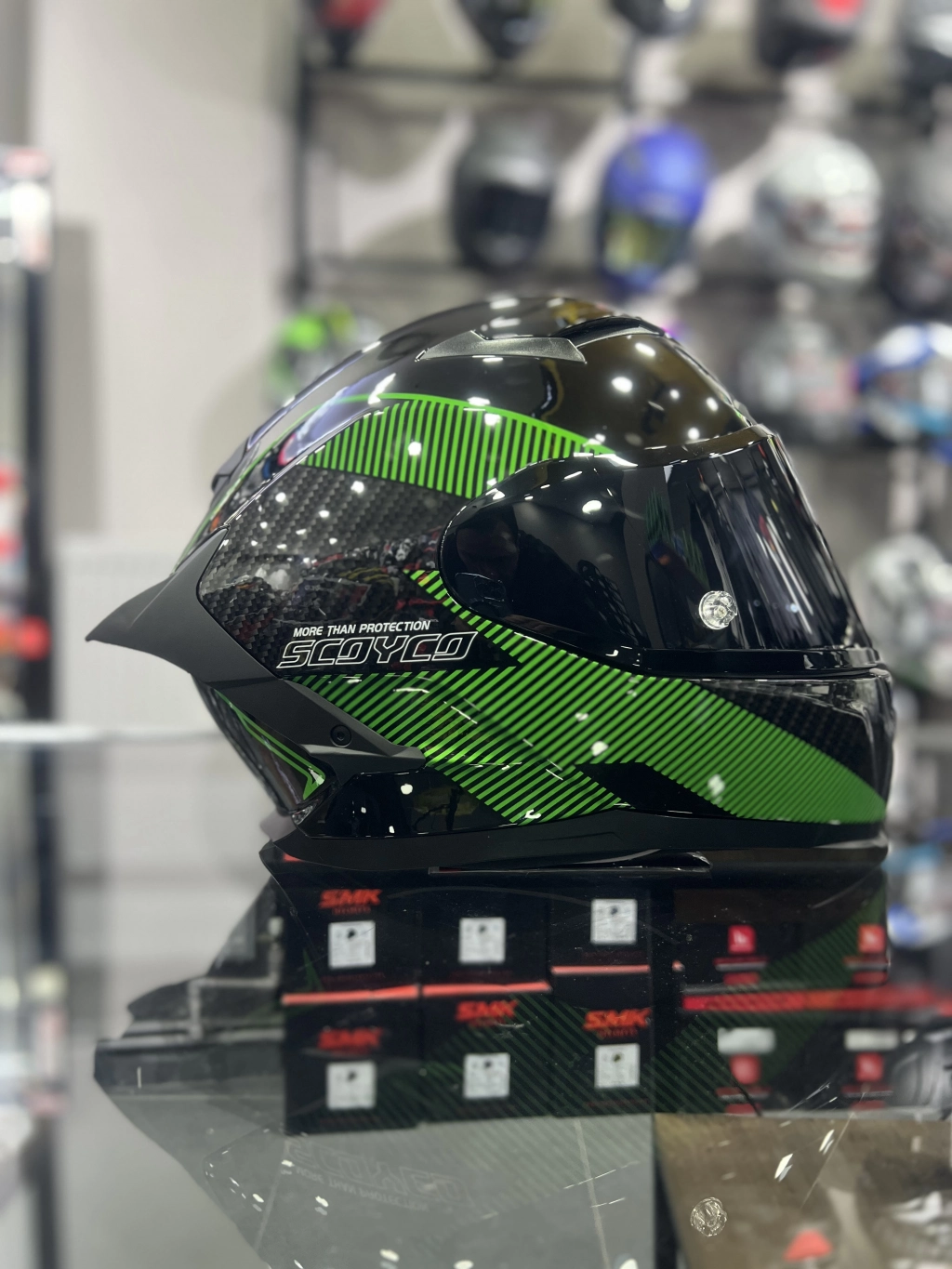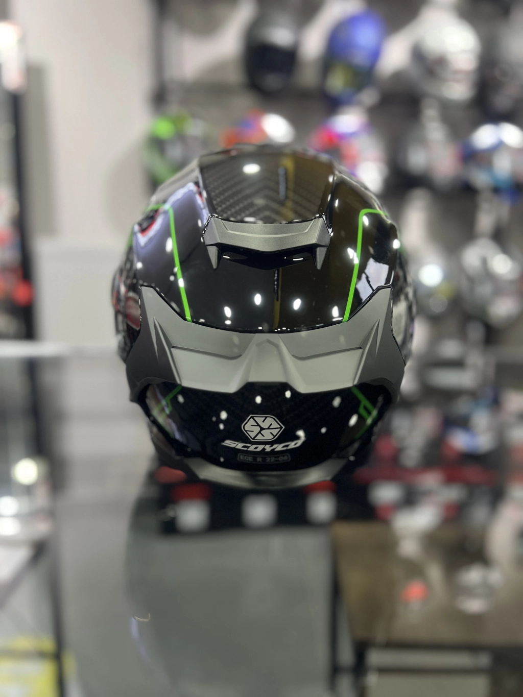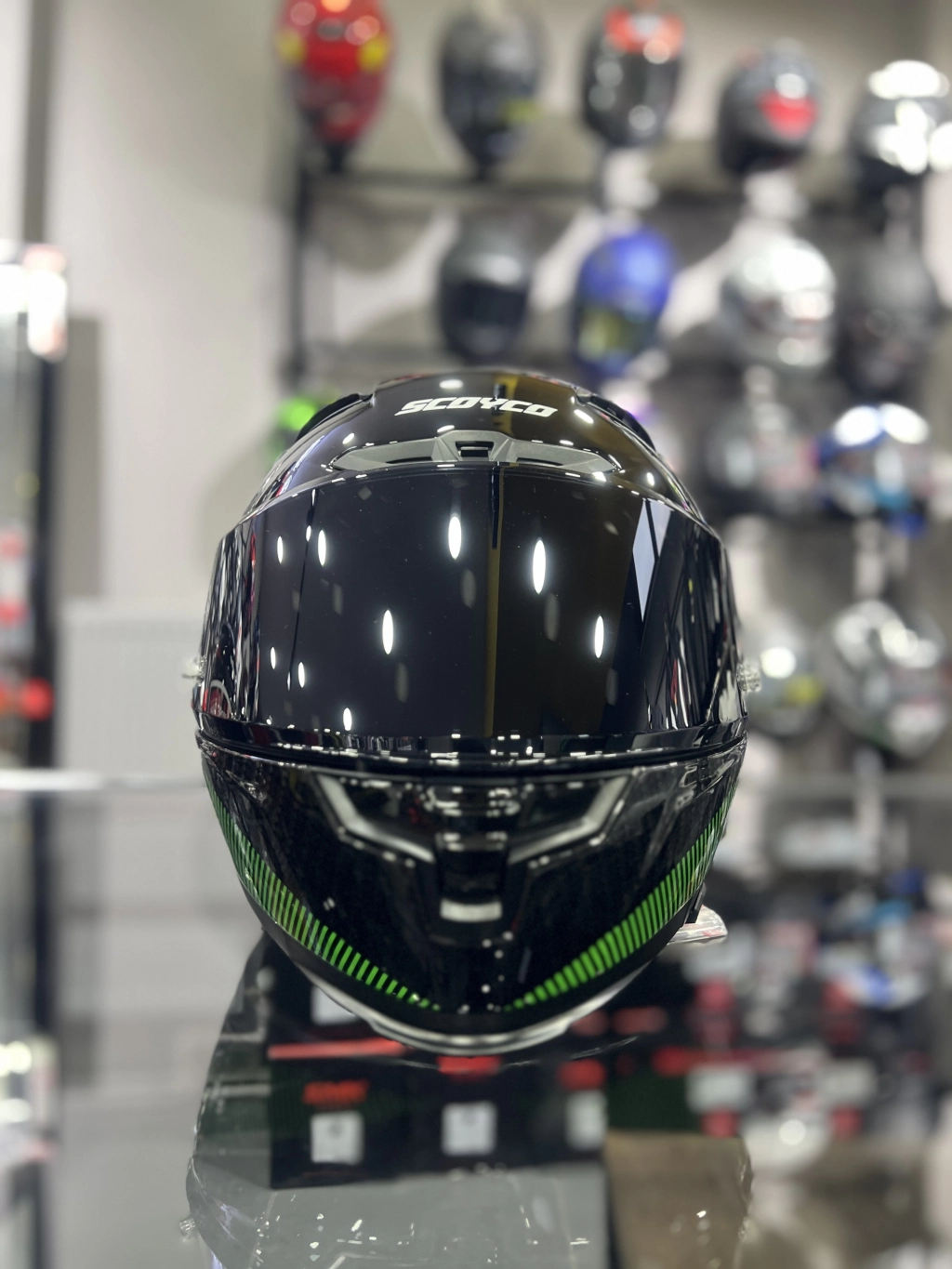 871 Ghost Yeşil Siyah Vizörlü Kapalı Kask
