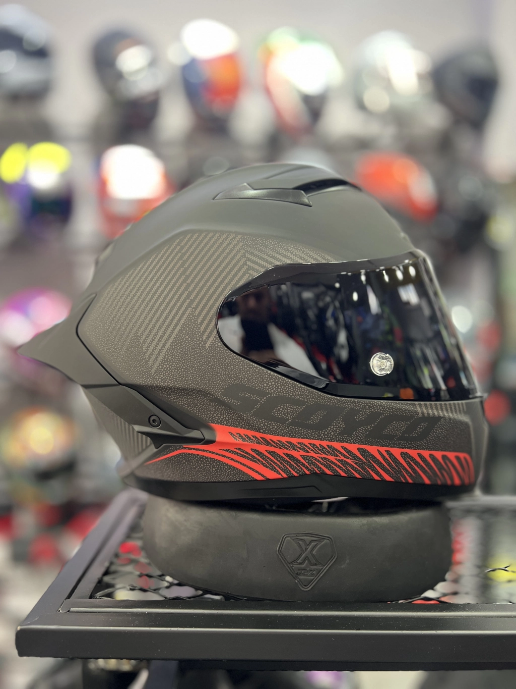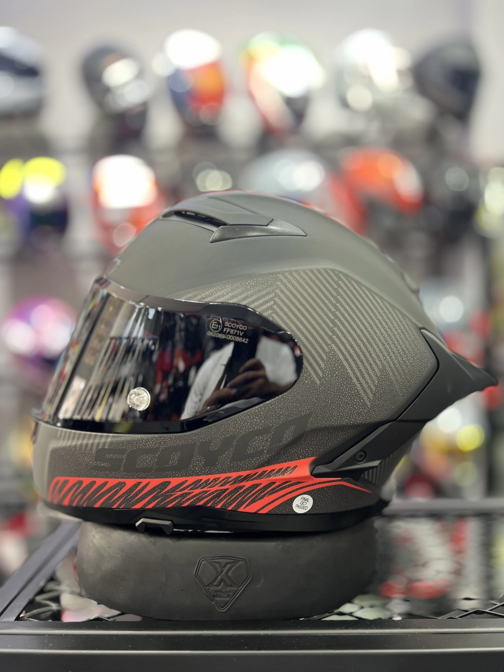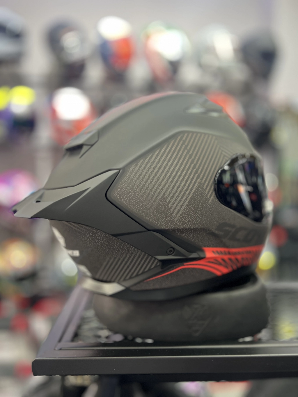 871 Mat Gri Kırmızı Siyah Vizörlü