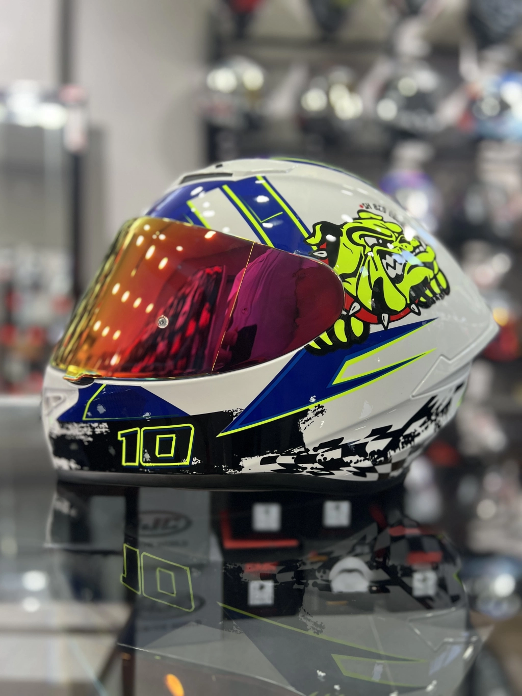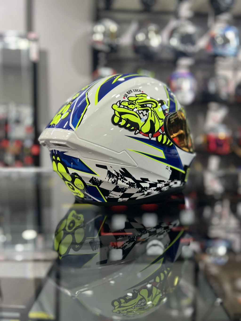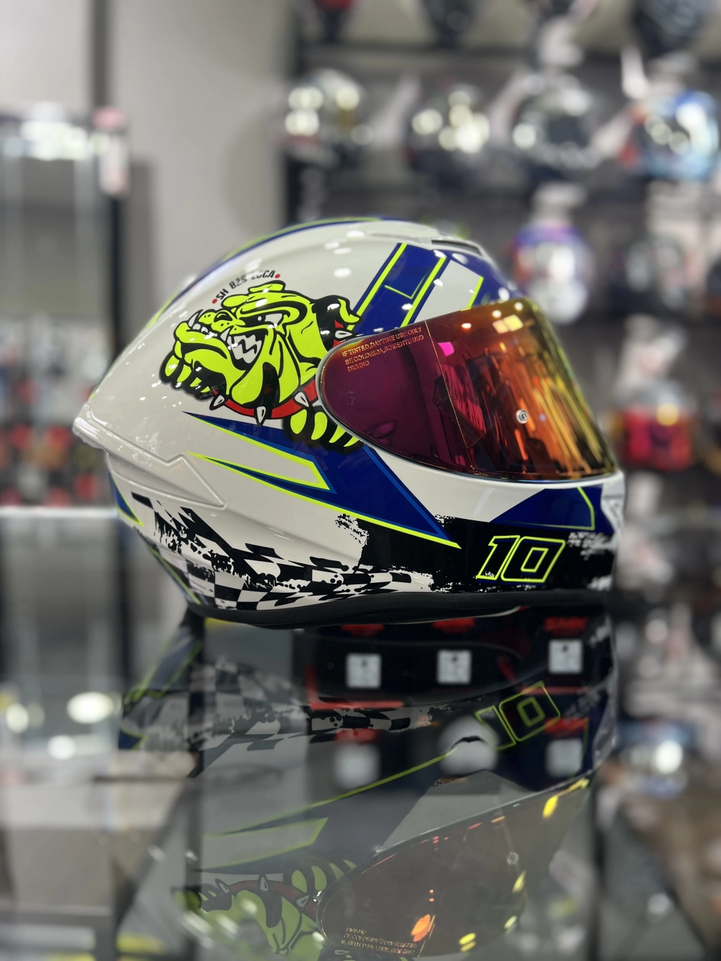 Beyaz Mavi Kask Dog Gold (+1 Şeffaf Vizör)