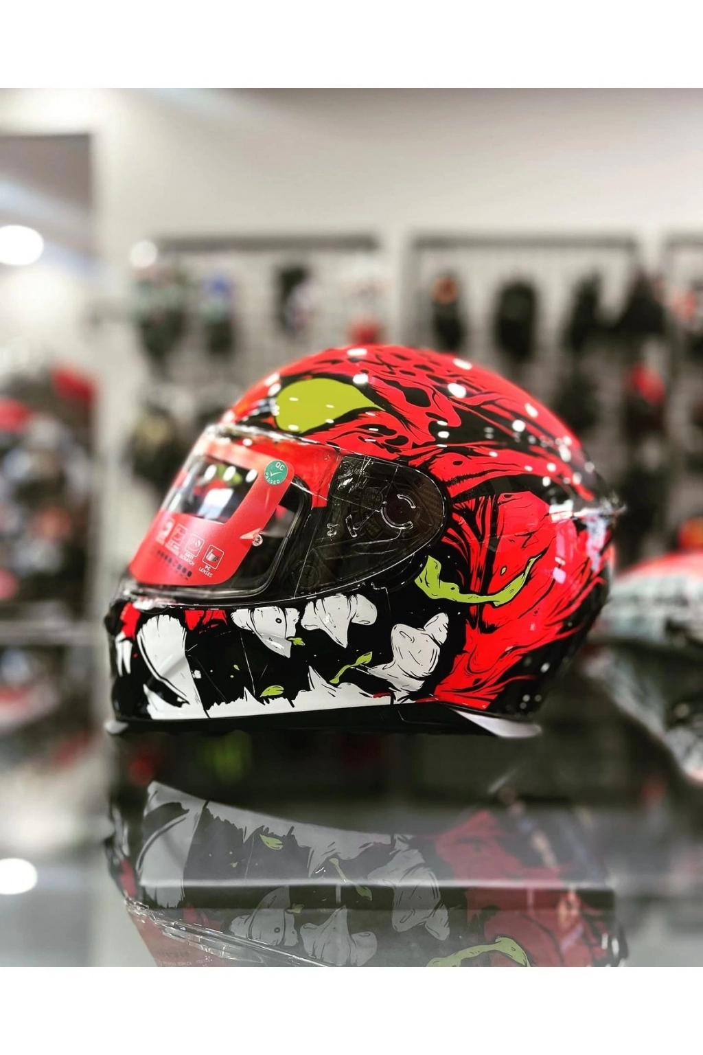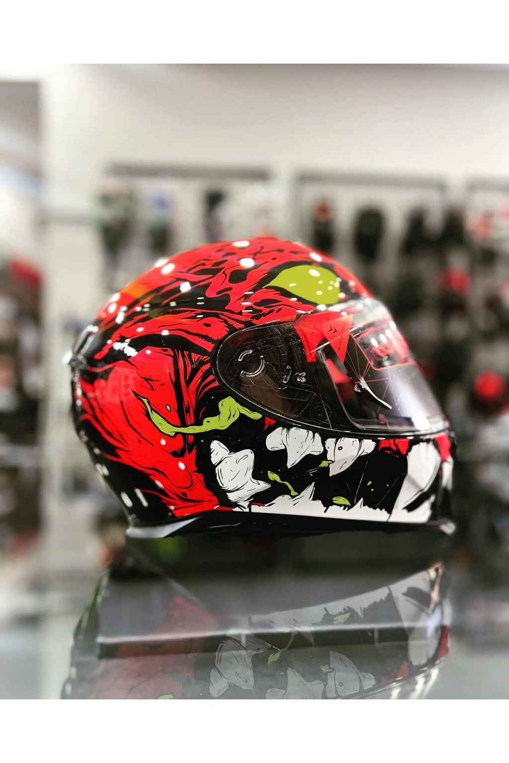 R1 Parlak Siyah Vizörlü Kapalı Kask (Güneş Vizörlü)