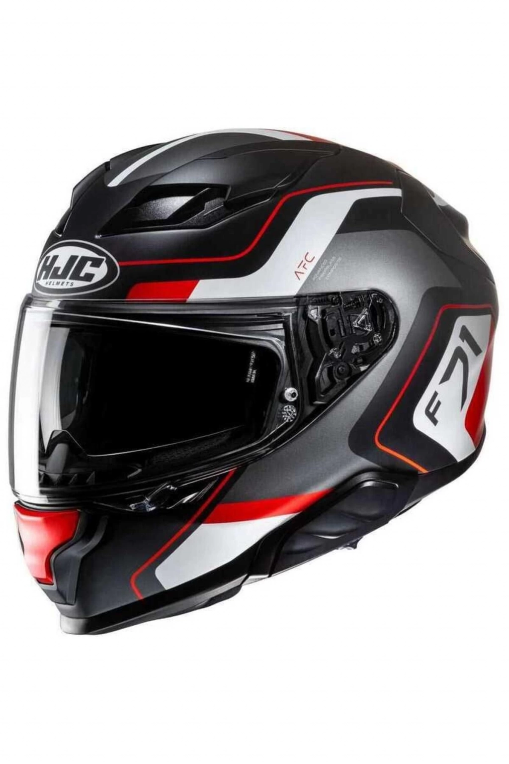 HJC F71, zarif yeni kasa tasarımıyla bir Sport-Touring modelinin limitlerini zorluyor. Kompozit fiberglastan 3 dış kabuk boyutunda üretilmiştir. Genişletilmiş havalandırma delikleri ile yeniden düzenlenmiş üst havalandırma, daha fazla hava girişi ve havalandırma sağlar. Güneş vizörü ve şeffaf vizörü , güvenliği artırmak için yeni bir PE (bas/çıkar) kilitleme sistemine sahiptir, ayrıca eldivenlerle kullanımı kolaydır. Yeni güneş vizörü sürücüye vizörünü öne doğru (10 mm'ye kadar) ayarlamak için yeni bir 3 konumlu seçenek sunar ve güneş vizörü için ideal koruma sağlar. Teknik özellikler: Kompozit Fiberglas Kabuk: Hafif, üstün uyum ve rahatlık. ECE 22.06 yönetmeliklerini karşılar ve aşar.; Maksimum hızlarda aşırı performans için aerodinamik kabuk yapısı; Double D ring bağlama sistemi.; Yüksek hızlı sürüşler için geliştirilmiş çift vizör kilitleme sistemi; Çift yönlü vizör mekanizması: akıcı hareket ve daha fazla su geçirmezlik; Geniş görüş alanı, kullanıcılara daha iyi çevresel görüş sağlar.; İç kısımında daha iyi nem emme ve hızlı kuruma için gelişmiş antibakteriyel kumaş kullanılmıştır, tamamen çıkarılabilir ve yıkanabilirdir.; Gözlükler ile kullanıma uygundur.; Gürültü azaltma ve daha az hava türbülansı için tasarlanmış ön kenar spoyleri mevcuttur.; Gelişmiş kanallı havalandırma sistemi "ACS": tam hava akışı önden arkaya geçer ve kasktaki ısı ve nemi ortadan kaldırır.; HJC 11B, 21B ve 50B SMART Bluetooth Sisteminin kurulumu için hazırlanmıştır.