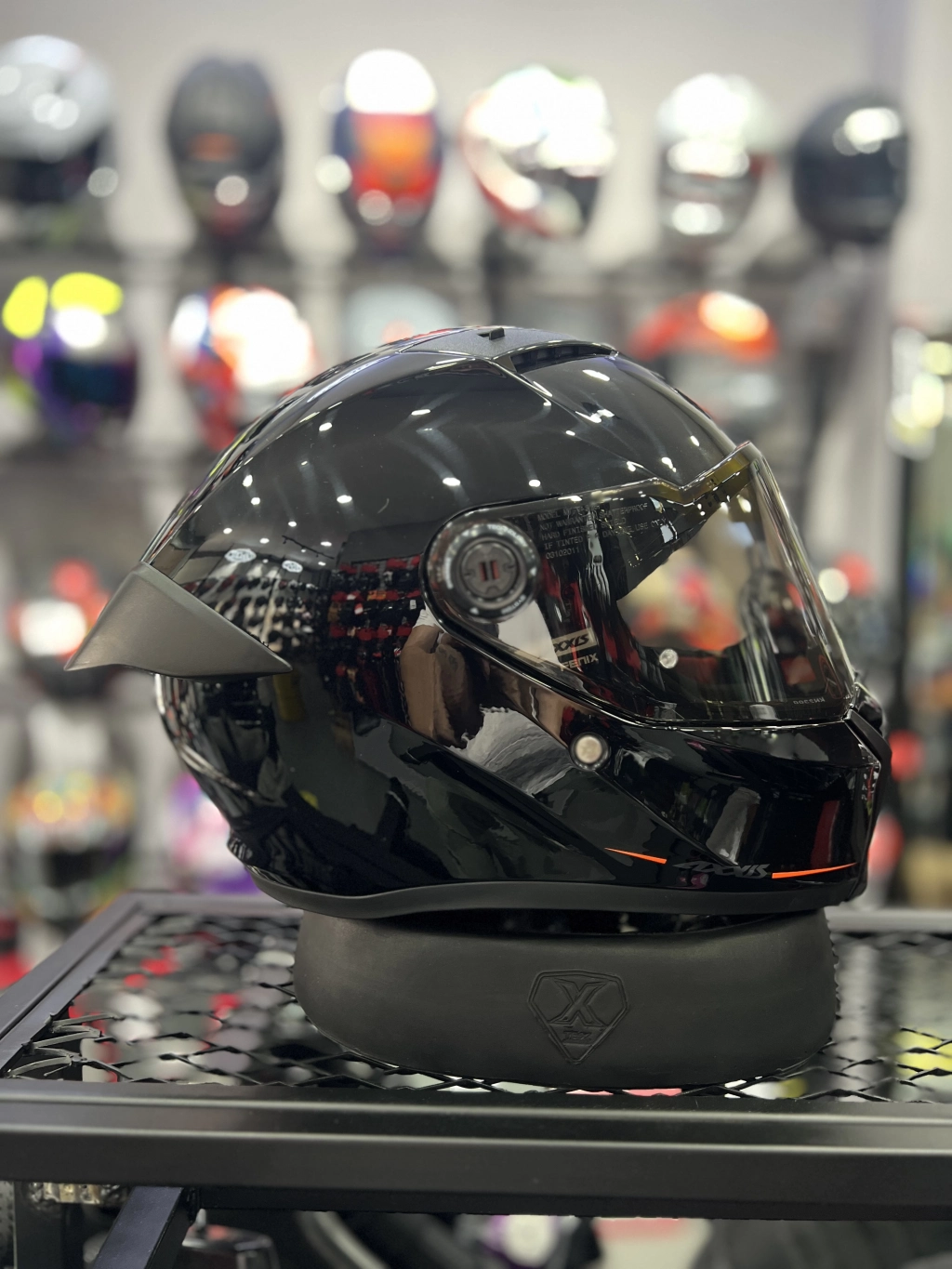 R1 Parlak Siyah Kapalı Kask (Siyah Vizörlü) md820