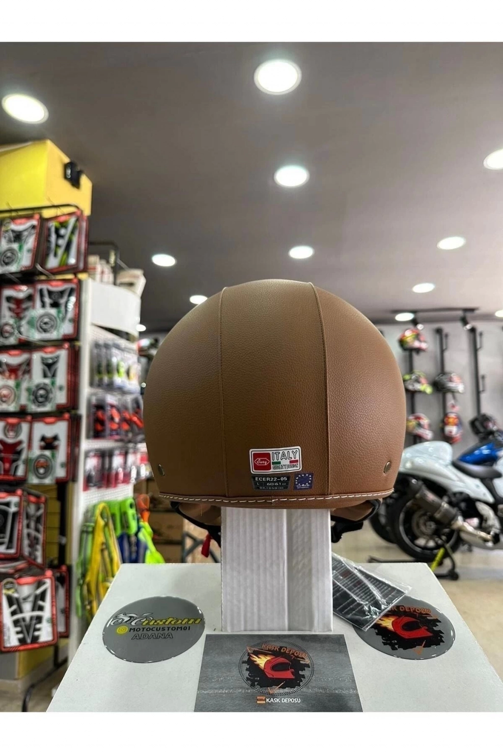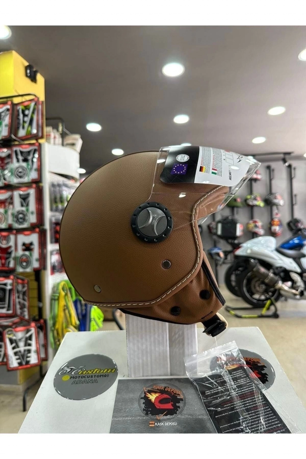 Sway FS701 Deri Kaplama Yarım Motosiklet Kaskı (Kahverengi)