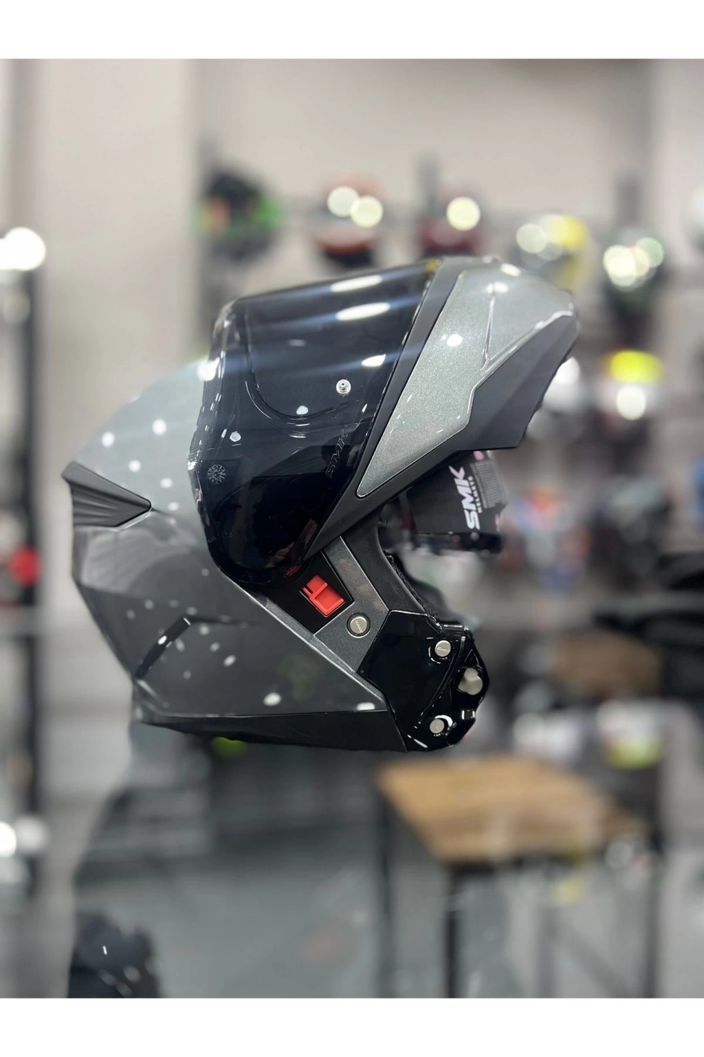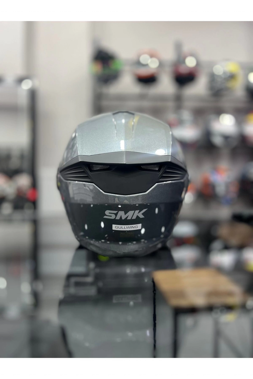 Smk Gullwıng rahat oturma ve dinamik bir dış kabuk tasarımı sunan, geziciler ve her gün işe gidip gelenler için bir Flip-up kasktır. Çift P/J homologasyonu, hem açık hem de tam kapalı kask olarak kullanılmasına izin vererek maksimum güvenlik sağlar. ŞEFFAF VİZÖR İLE GÖNDERİLMEKTEDİR. SİYAH VİZÖR ÇEKİMDE KULLANILMIŞTIR.EKSTRA OLARAK SATILMAKTADIR.