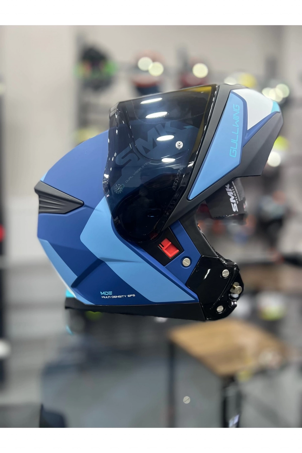 Smk Gullwıng rahat oturma ve dinamik bir dış kabuk tasarımı sunan, geziciler ve her gün işe gidip gelenler için bir Flip-up kasktır. Çift P/J homologasyonu, hem açık hem de tam kapalı kask olarak kullanılmasına izin vererek maksimum güvenlik sağlar. ŞEFFAF VİZÖR İLE GÖNDERİLMEKTEDİR. SİYAH VİZÖR ÇEKİMDE KULLANILMIŞTIR.EKSTRA OLARAK SATILMAKTADIR.