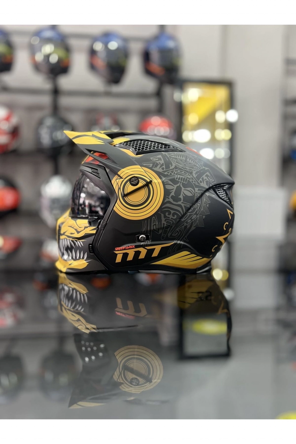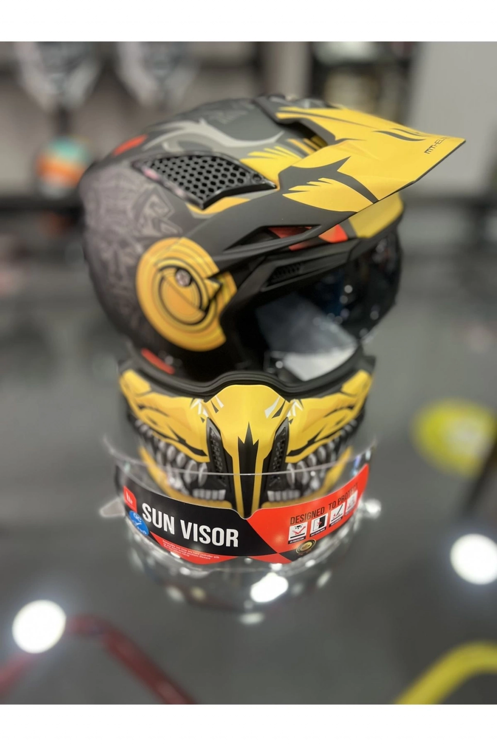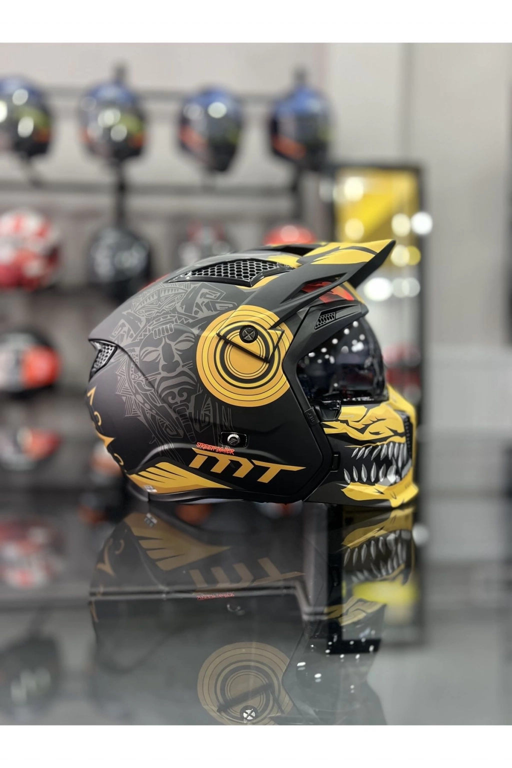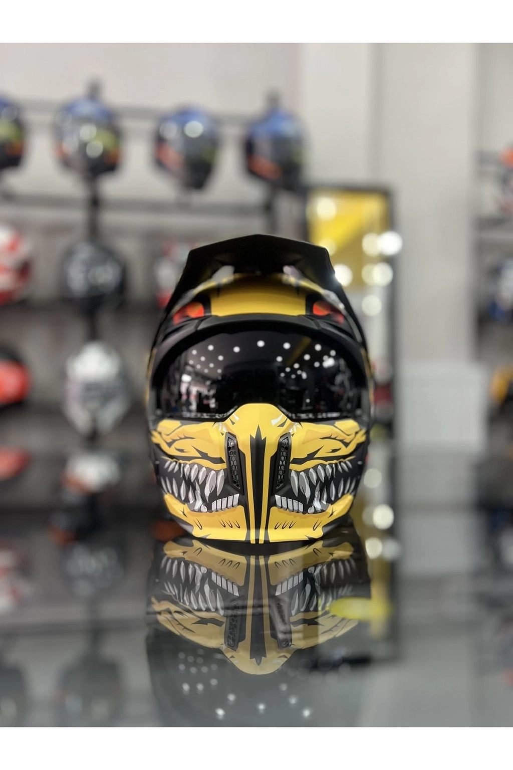 Çene çıkarılabilir, kutu içeriğinde Şefaf ve Siyah Camı mevcut İspanyol markasının önemli yeniliği, geçmişin kaskların ıoff-road dünyası tarafından kullanılan tarzda hatırlatan yeni, çok özel veyenilikçi bir dönüştürülebilir jet kask. ; İki tekerlek dünyasında çok çekici ve gerçekten çok yönlü hale getiren bu modelin ana özellikleri arasında çıkarılabilir çene koruması ve spor kamerayı monte etmek için entegre destek bulunmaktadır. ; HIRP'de, son derece hafif ve darbeye dayanıklı hale getiren polimerlerden oluşan bir dış kabuk ile üretilmiştir. ; İki boyut, küçük ve büyük iç kabuk, iki boyutta da, farklı yoğunluklara sahip EPS'den yapılmıştır. ; Hızlı çıkarılabilen vizör çizik ve anti-UV'dir. ; Streetfighter, özellikle güneşli sürüş koşullarında daha iyi görünürlük için dahili bir güneşlik ile donatılmıştır. ; Ürün güneş siperi ve renkli siperliği içerir ; İç kısımlar çıkarılabilir ve yıkanabilir nefes alabilir ve hipoalerjenik mikrofiber kumaşlarla yapılır. İade ve değişimlerde kullanılmış yada etiketleri sökülmüş ürünlerde iade veya değişim yapılamamaktadır. ;