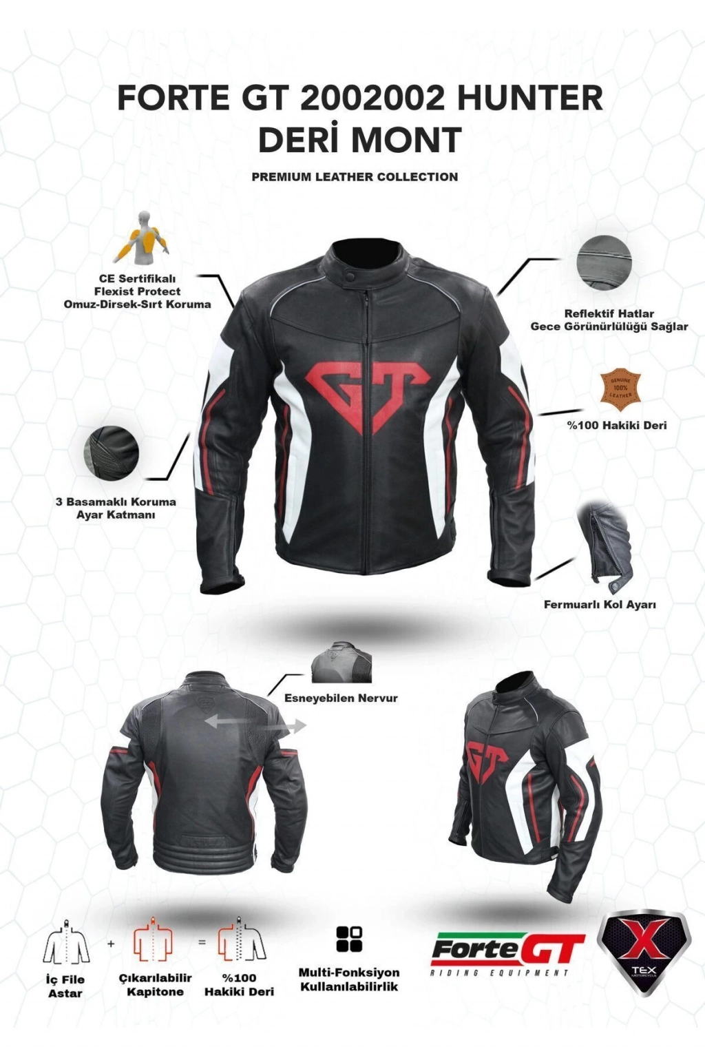 Premium Leather Collection ; %100 Hakiki Deri ; Çıkarılabilir iç kapitone ısı yalıtımı sağlar. ; Gece görüşü için reflektif hatlara sahip. ; Ayarlanabilir bilek detayları ; CE Sertifikalı ”Flexist Protect” marka omuz, dirsek ve sırt korumalar ; Esneyebilen nervur ;