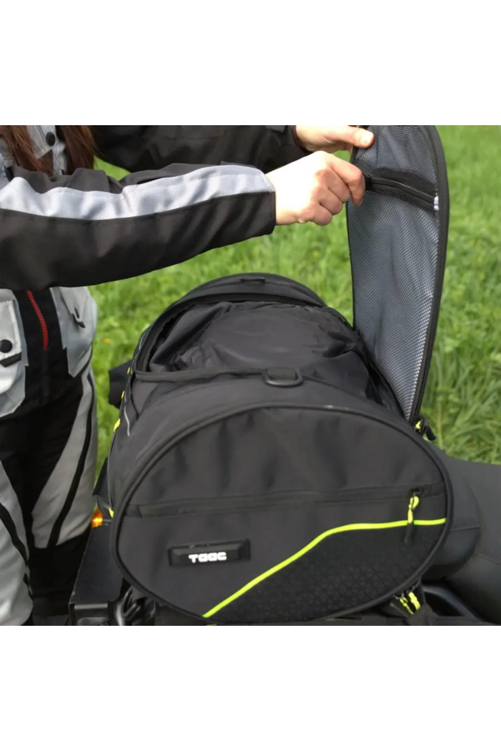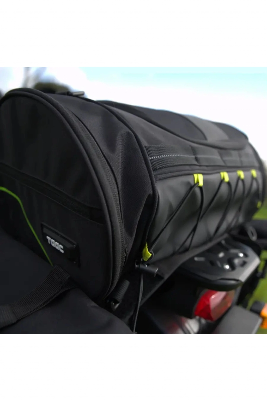 TAAC KUYRUK ÇANTASI TC33 35LT SİYAH Teknik özellikler Kapasite: 35 litre Ölçüler: U 500 mm x G 280 mm x Y 280 mm Yüksek kaliteli polyester kumaş (High Poly) Elde taşımak için pratik taşıma sapı Yüksek görünürlüklü reflektör detaylar Ön ve arka tarafta çift D-Ring bağlantılı kayışlar ve alt kısımda sele veya kuyruk altına geçirilmek üzere merkezi güvenlik kayışı ile sabitleme sistemi Çift açılım: üstten ve yandan Fermuarlı yan cepler Üst kısımda fermuarlı iç file cep Çıkarılabilir, ayarlanabilir omuz askısı Alt cepten çıkarılabilen entegre su geçirmez kılıf Eldivenle kullanıma uygun pratik fermuar çekmeleri Bağlama sistemi Çıkarılabilir reflektör detaylı sabitleme kayışları