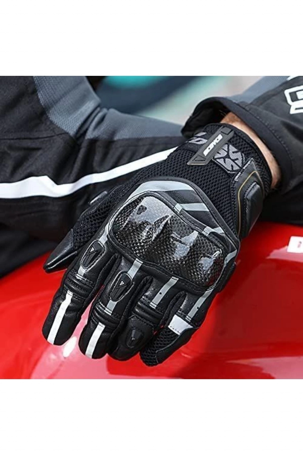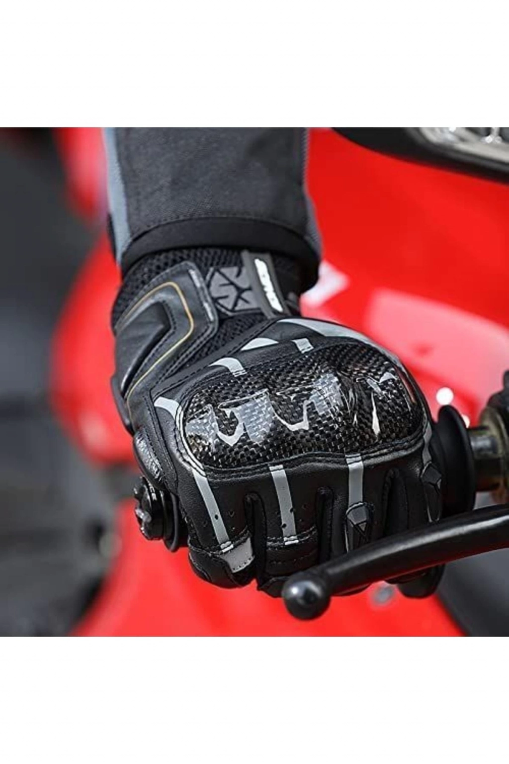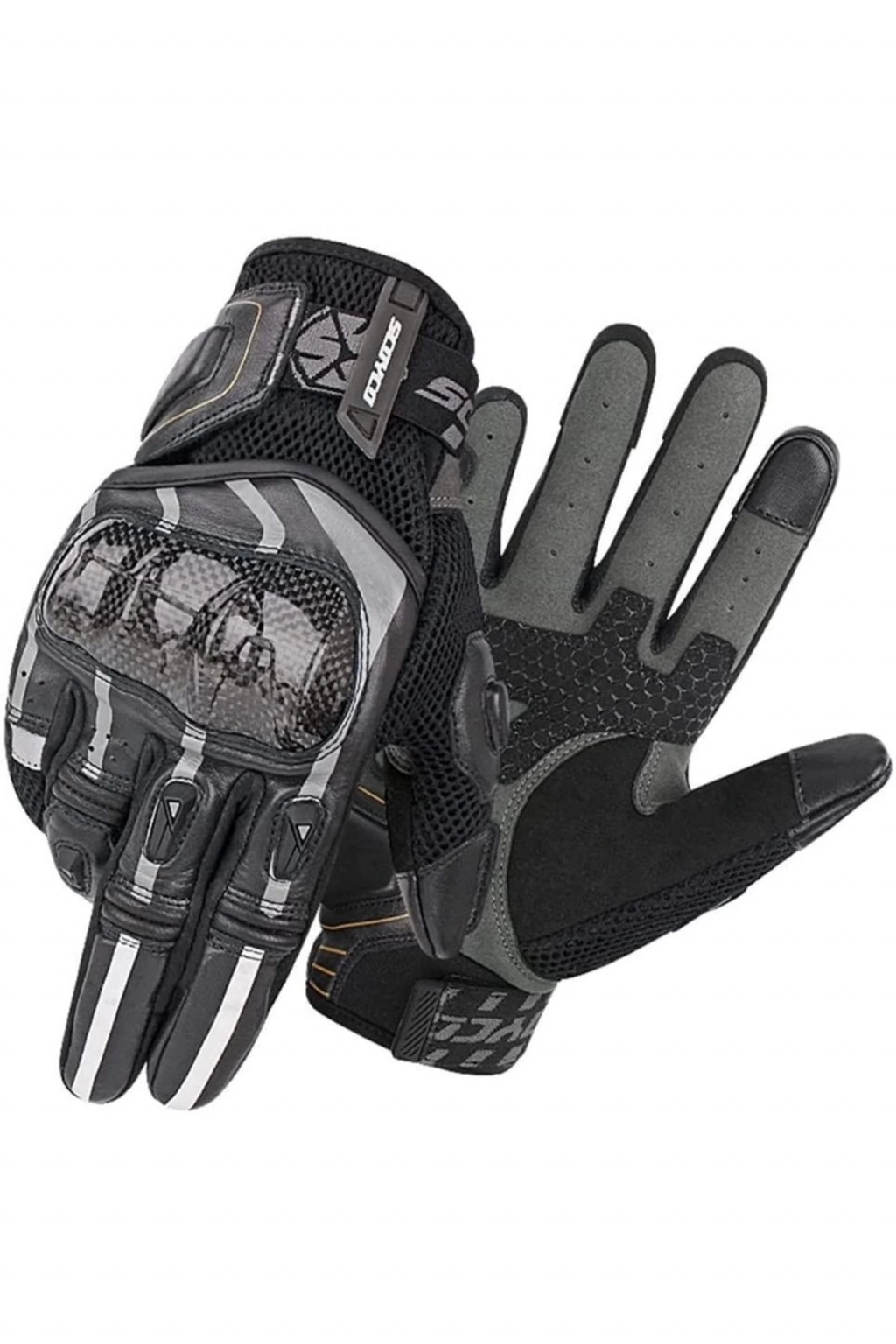 Scoyco Mc 109 Karbon Fiber Full Korumalı Motosiklet Eldiveni siyah Scoyco mc 109 siyah motosiklet eldiveni Yüksek kaliteli malzeme koruması: Scoyco mc 109 motosiklet eldiveni karbon fiber kompozit malzeme ve dana derisinden üretilmiştir; Eldivenler hafif ve dayanıklıdır ve daha da önemlisi, tehlikeli durumlarda ellerinizin yaralanmasını ve yaralanmasını önleyebilirsiniz; Nefes alabilen özel yapı: Eldivenlerin file malzemesi ve delikli tasarımı sayesinde sıcak havadaki sürüşlerde, rüzgarın teninize getirdiği serinliğin ve rahatlığın tadını çıkarabilirsiniz; Dokunmatik ekran: Başparmak ve işaret parmağı dokunmatik ekran malzemeleri ile tasarlanmıştır, bu sayede cep telefonu gibi elektronik dokunmatik ekranlı cihazlara eldivenlerinizi Çıkarmadan akılı telefonunuzla işlem yapabilirsiniz; Mükemmel kavrama ve kontrol: Avuç içi silikon kaymaz tasarımı ile gidon ve kumanda kollarını daha iyi tutmayı sağlayarak sürüş sırasında daha rahat olmasını sağlar; Esnek boyut ayarı: Bilekte büyük veya küçük el çevresi olan kişiler için uygun bir sıkma kemeri vardır, eldivenleri sizin için daha Uygun hale getirmek için sıkma kemerini ayarlayın;;