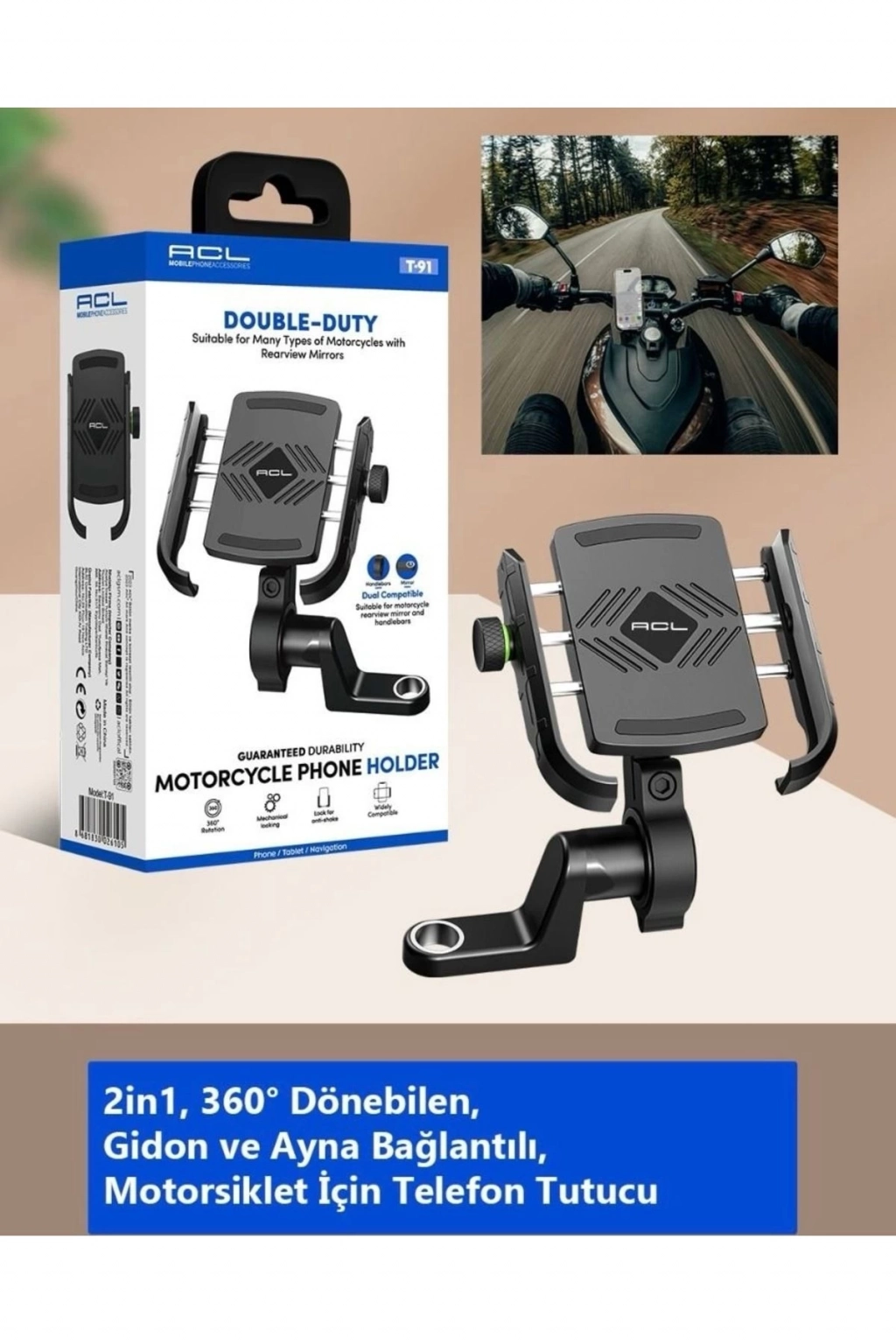 360 derece dönebilen - Gidon ve ayna bağlantılı - sağlam ve birinci kalite abs materyal uzun yıllar kullanıma uygun ve güvenilir motorsiklet telefon tutucu