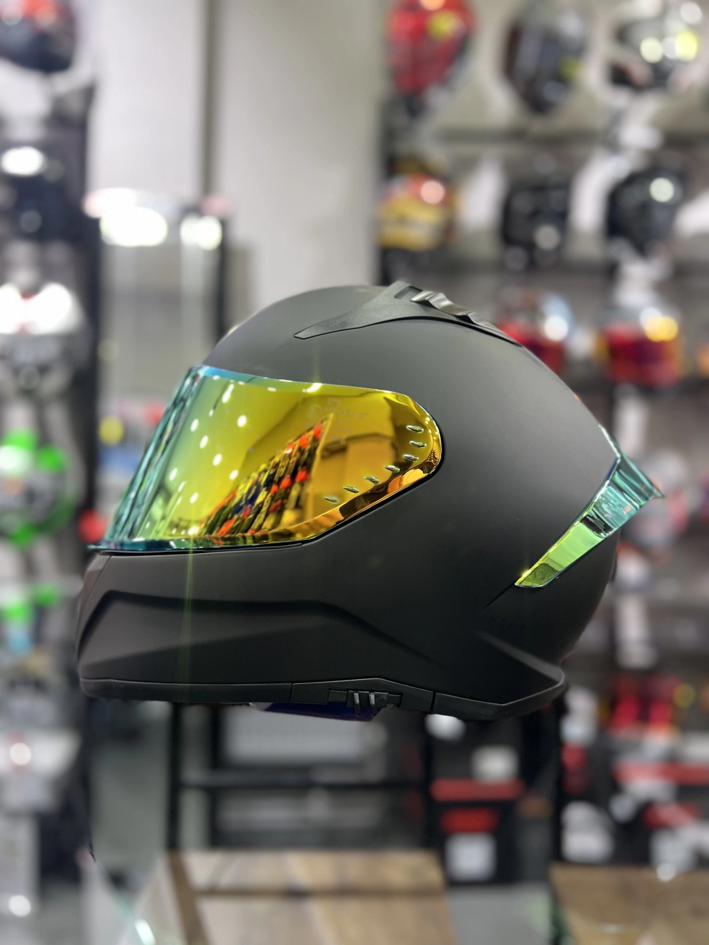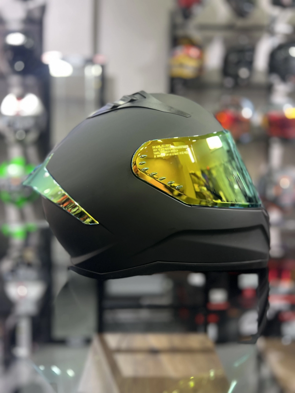 R1 Mat Siyah Revo Gold Vizörlü Kapalı Kask (Güneş Vizörlü)