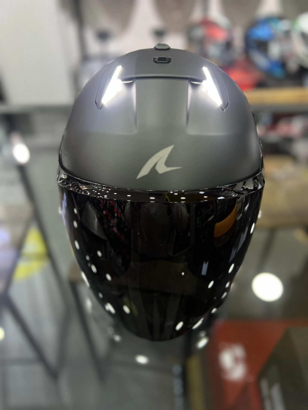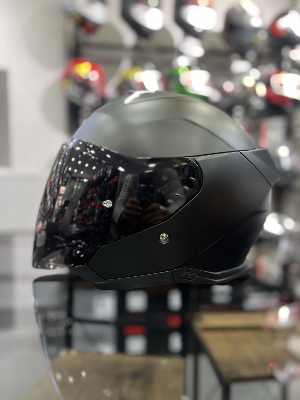 Skwal i3 Jet Mat Siyah Ledli Yarım Kask Siyah Vizörlü