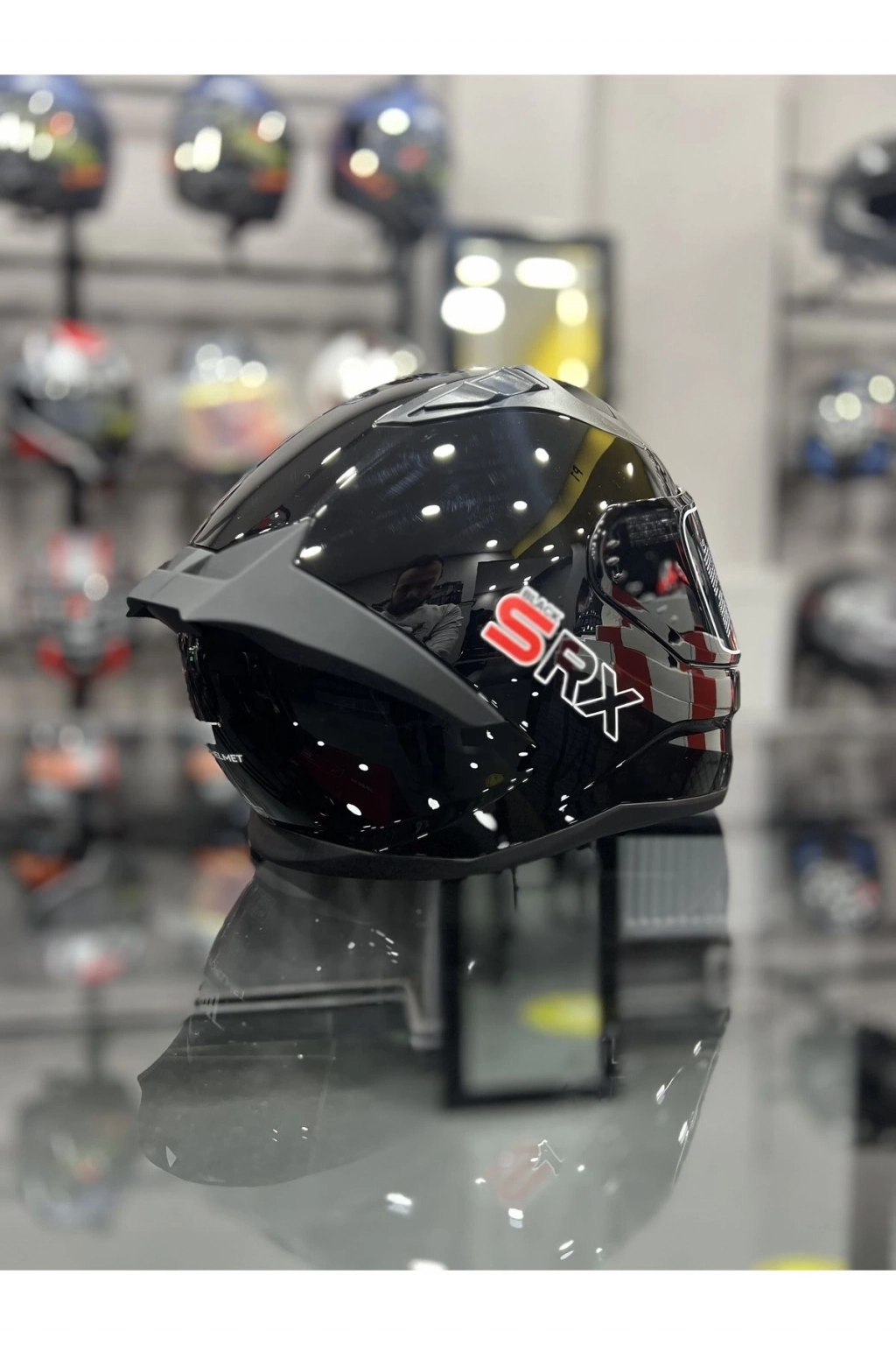 R1 Parlak Siyah Vizörlü Kapalı Kask (Güneş Vizörlü)
