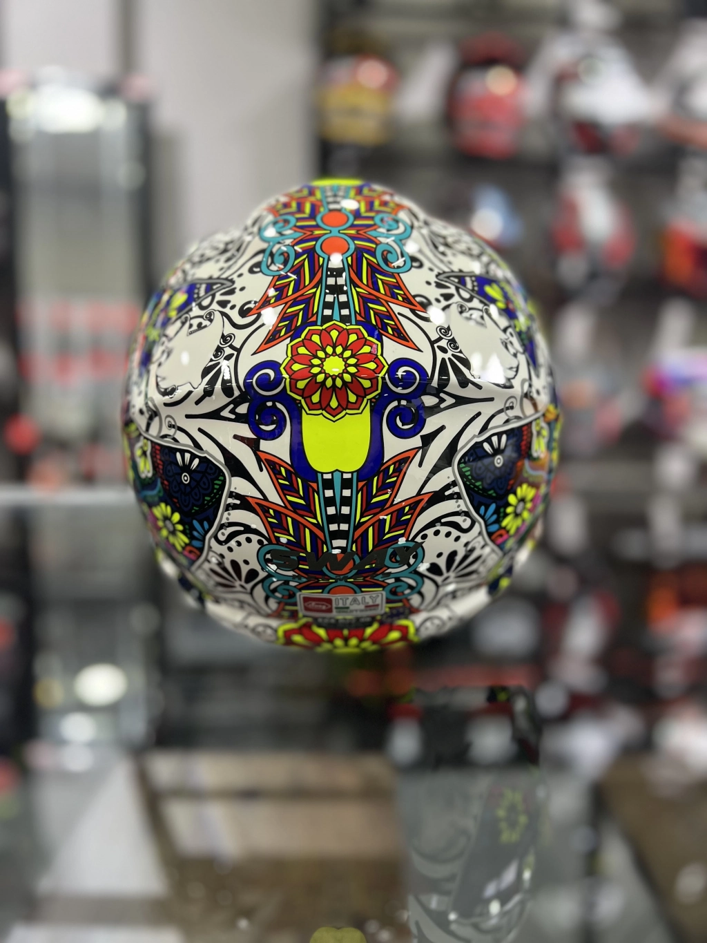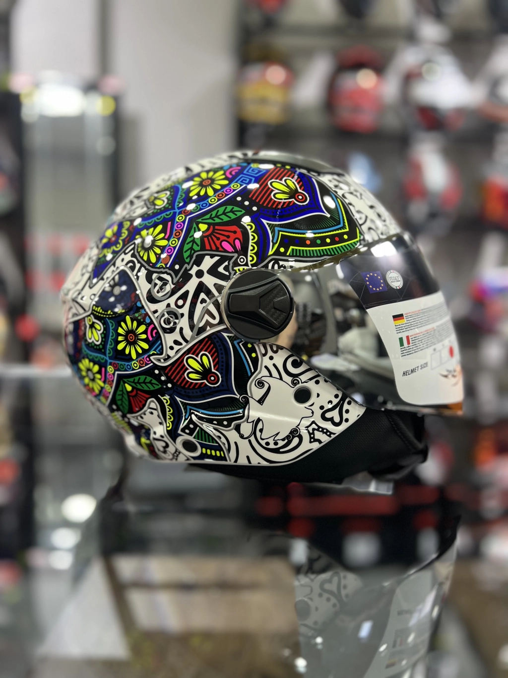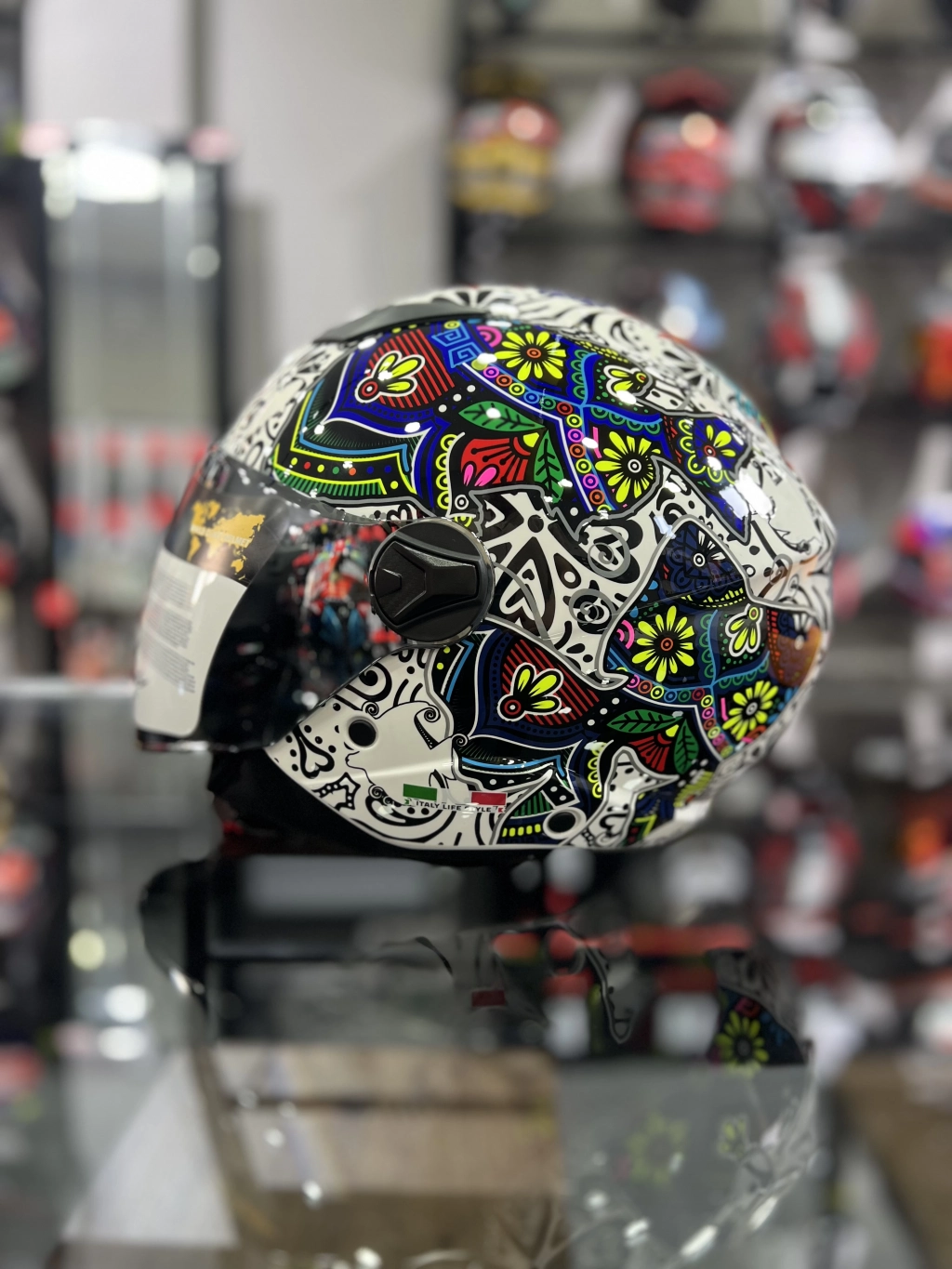 FR-665 Yarım Motosiklet Kaskı – SPRING Woman Desenli, CE Onaylı, Güneş Vizörlü
